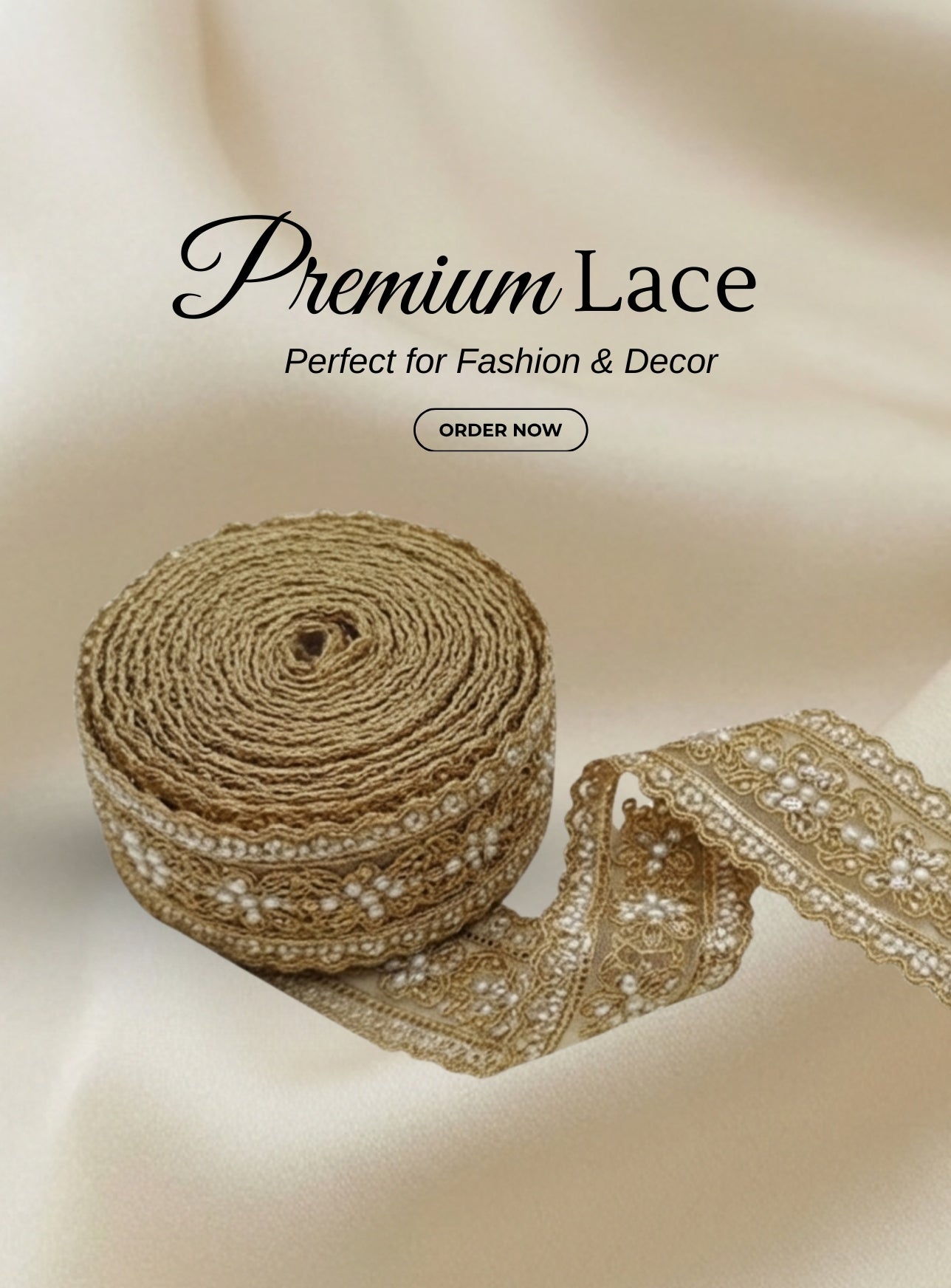 "Premium mirror lace. Timeless elegance awaits."